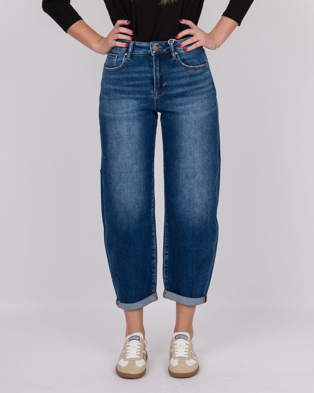 Risen Hi Rise Crop Mild Barrel Jeans Dark