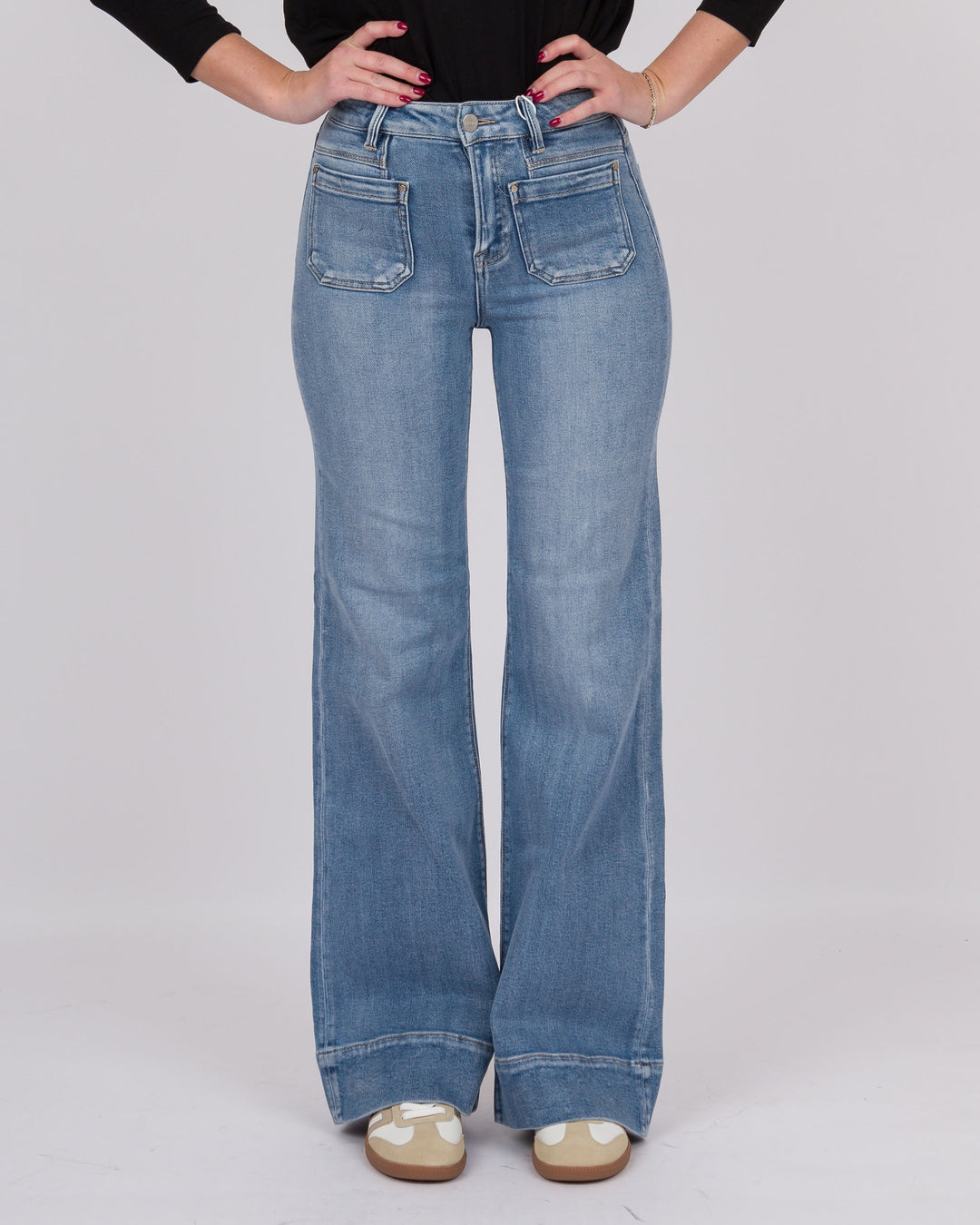 Risen High Rise Wide Flare Patch Pocket Jeans Medium