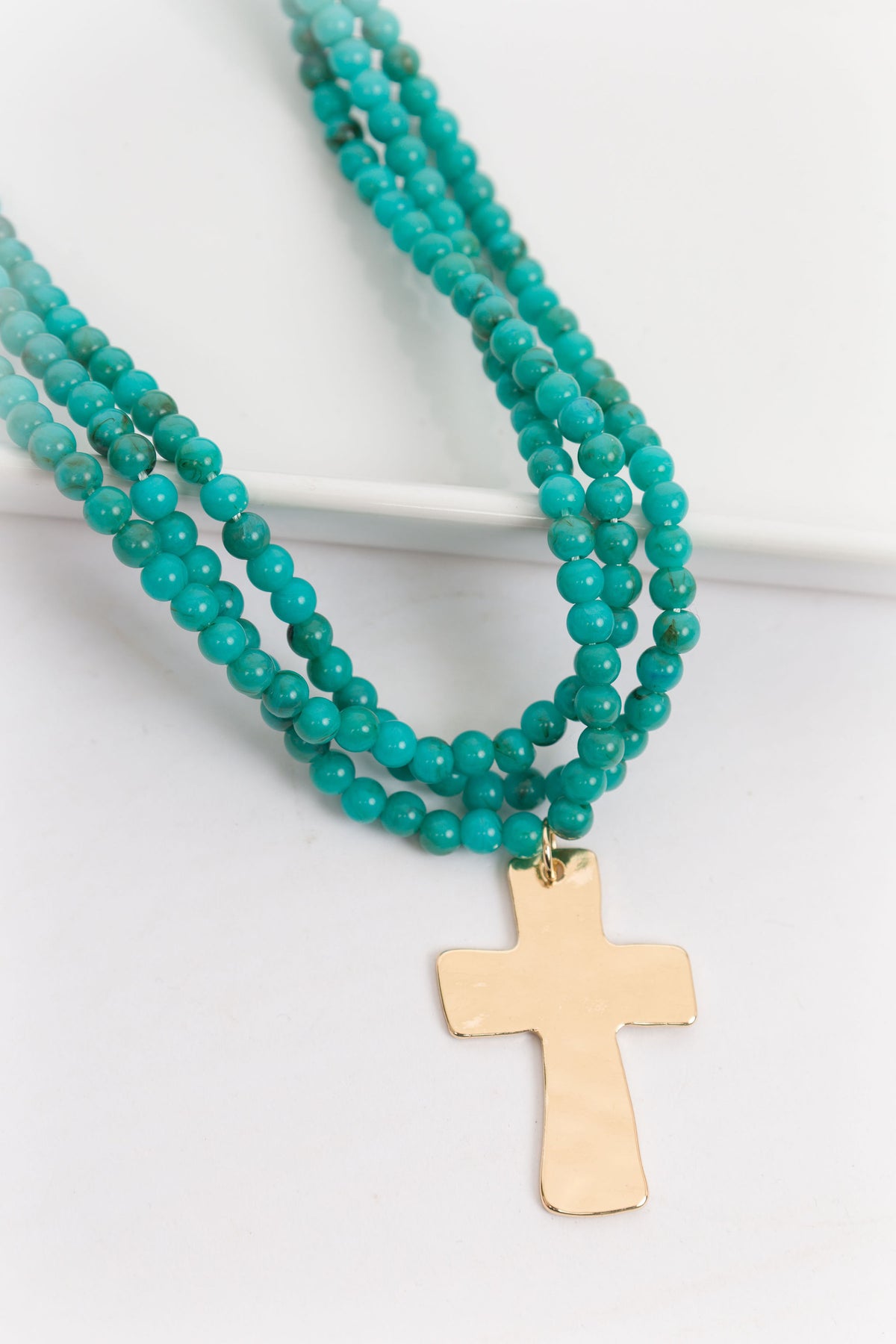 This striking layered necklace features a resin bead cross pendant that adds spiritual elegance to any outfit. The 18-inch length sits perfectly at the collarbone, making it versatile enough for everyday wear or special occasions. Mix and match with other pieces from your collection for a personalized, on-trend look.