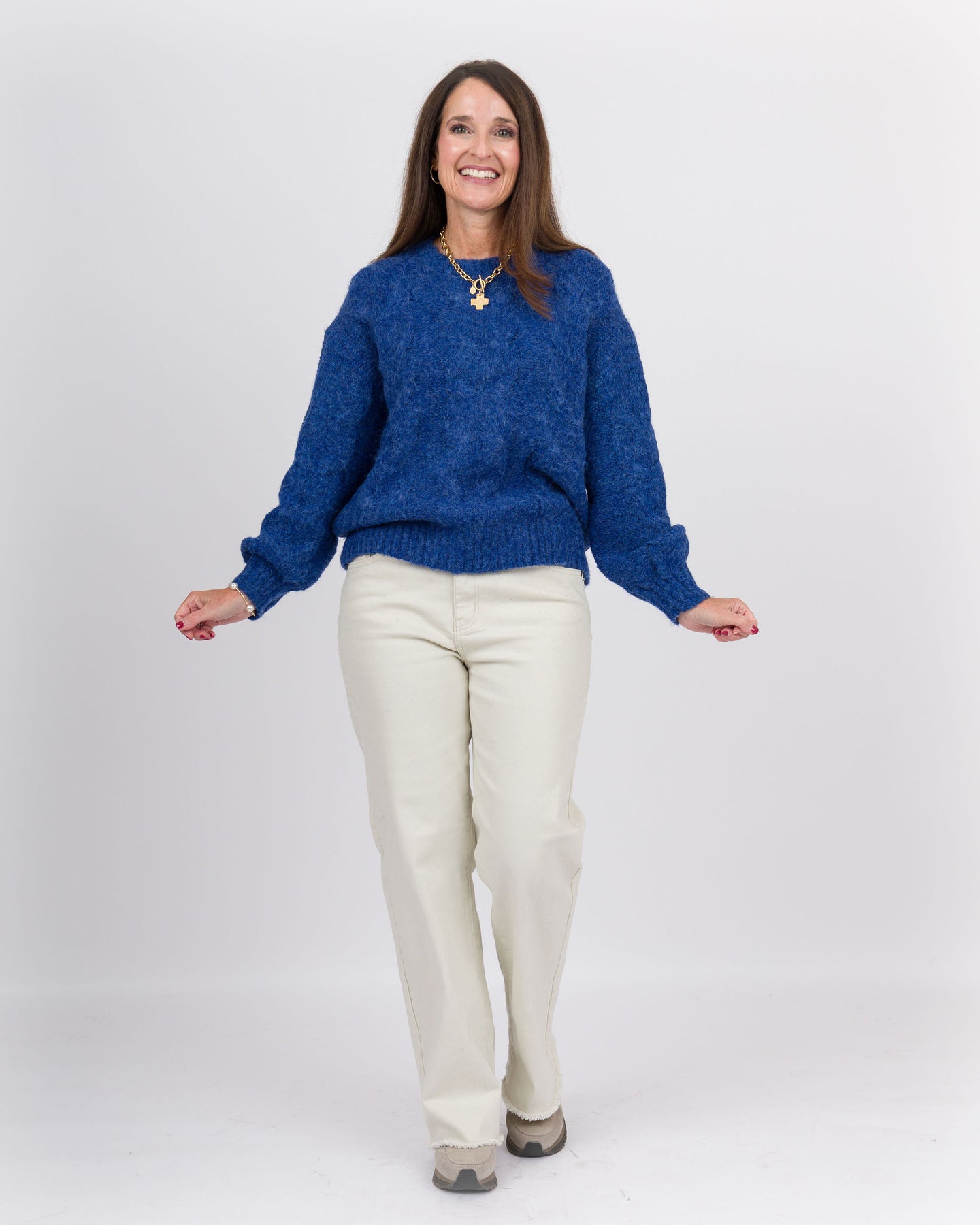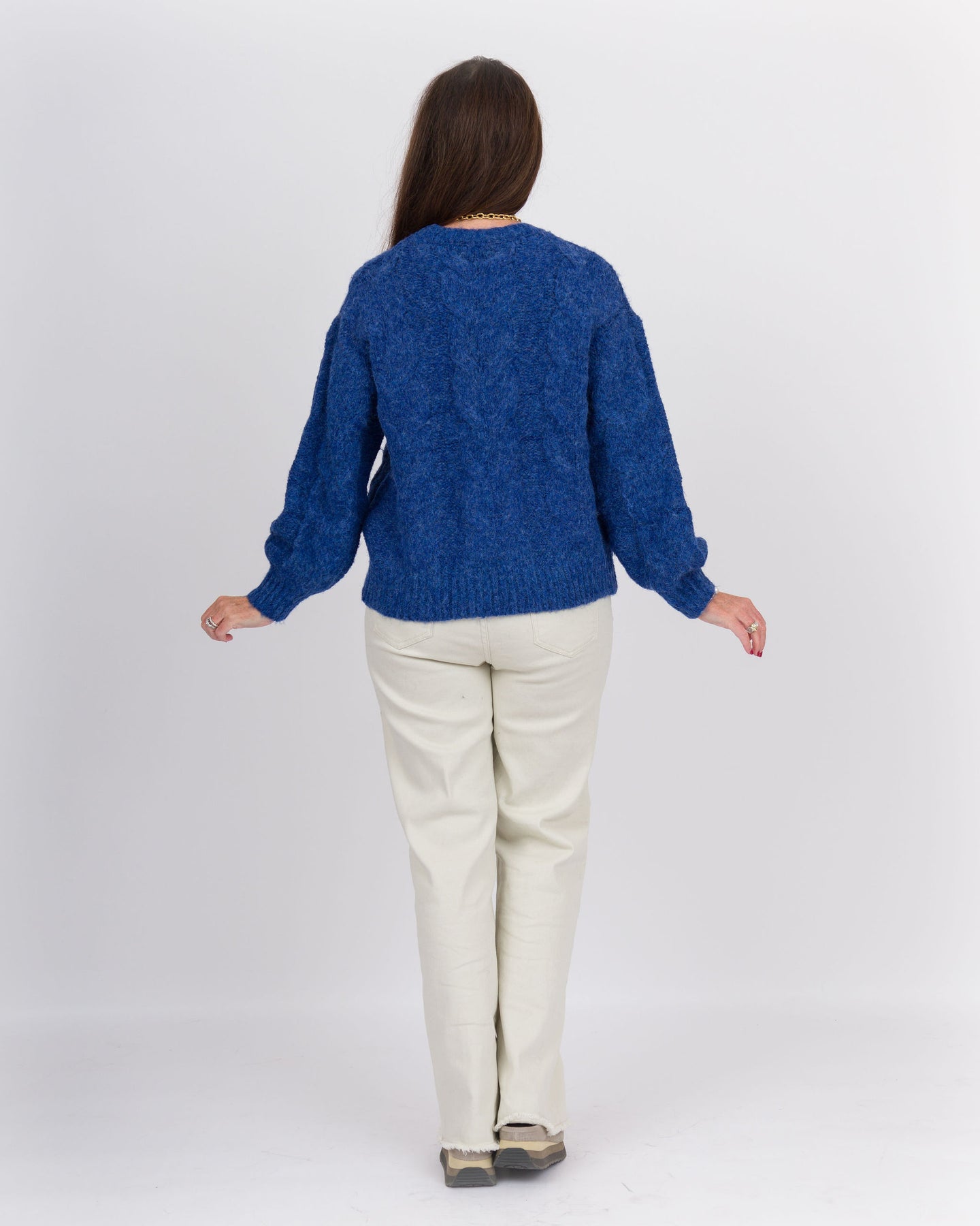 Wrap yourself in the soft comfort of this blue sweater, perfect for those chilly days when you want to feel embraced by warmth. The cozy knit fabric drapes beautifully while keeping you snug and relaxed, making it an ideal layering piece or standalone favorite. Whether you're curling up at home or stepping out for casual adventures, this sweater delivers effortless style with the comfort you crave.