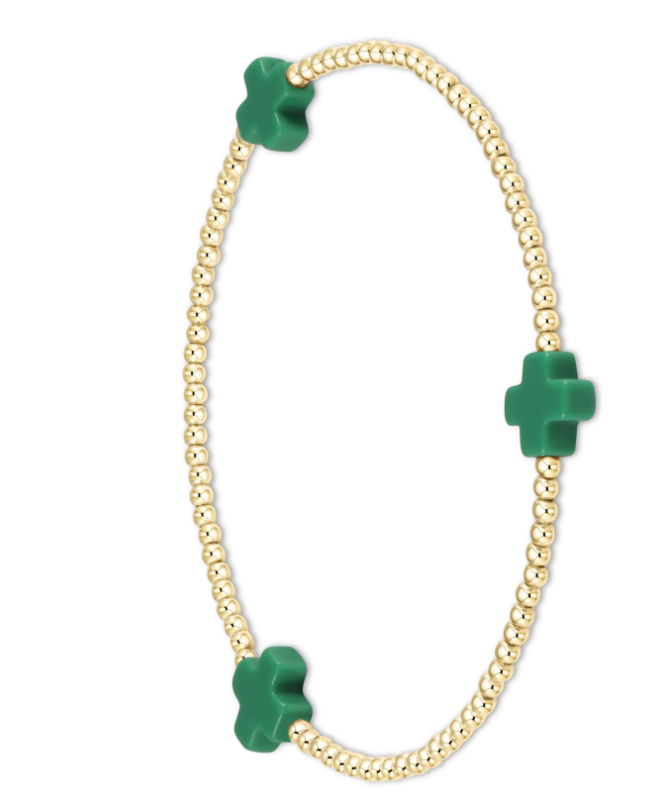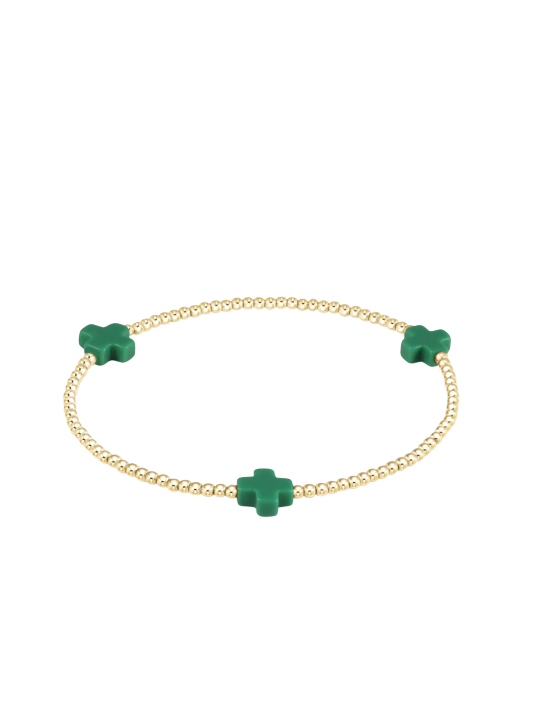 enewton Signature Cross Gold Pattern 2mm Bead Bracelet - Emerald