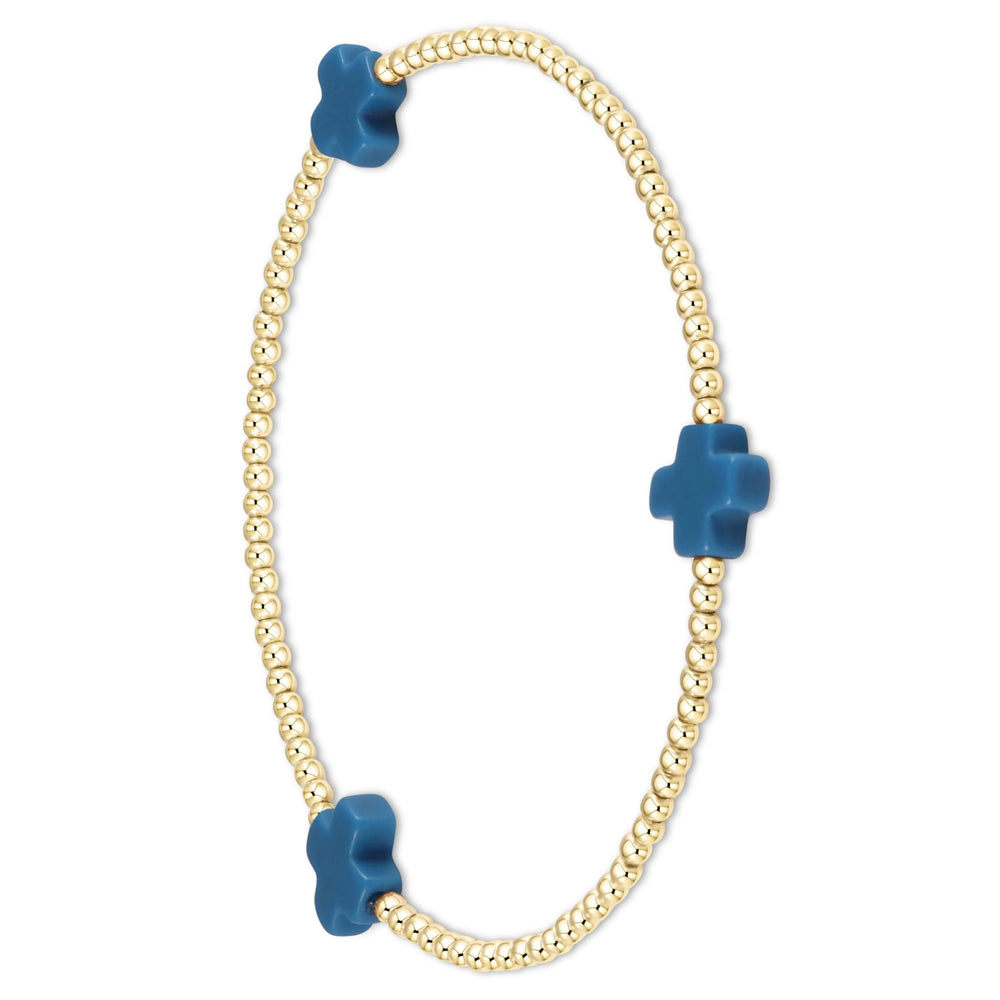 enewton Signature Cross Gold Pattern 2mm Bead Bracelet - Cobalt