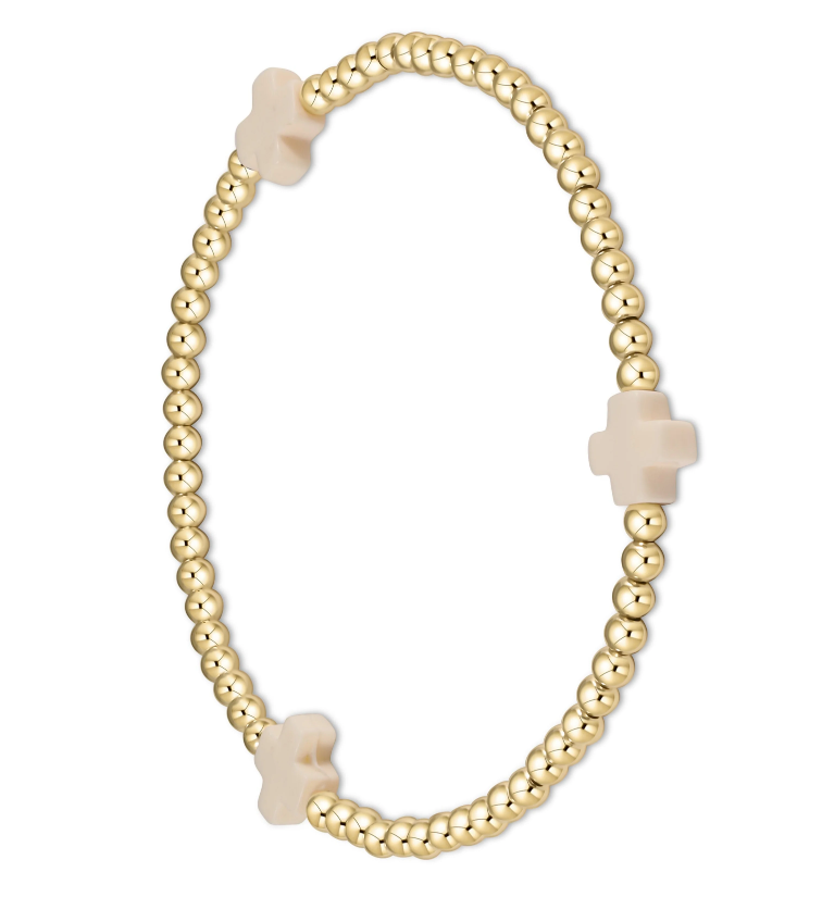enewton Extends - Signature Cross Gold Pattern 3mm Bead Bracelet - Off-White