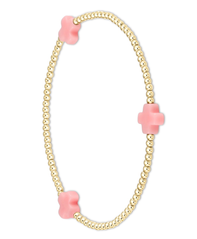 enewton Signature Cross Gold Pattern 2mm Bead Bracelet - Light Pink