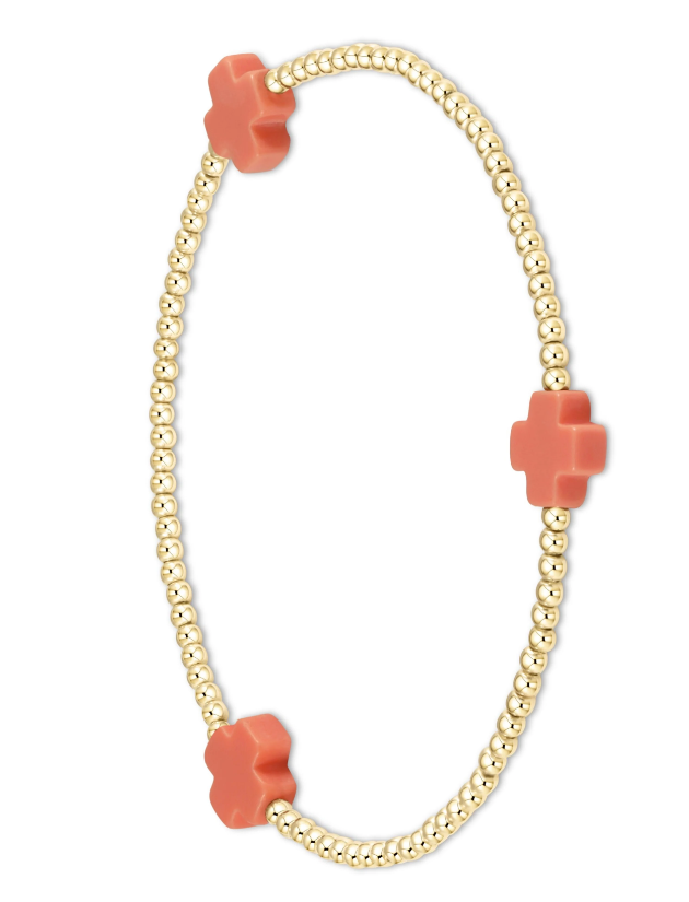 enewton Signature Cross Gold Pattern 2mm Bead Bracelet - Coral
