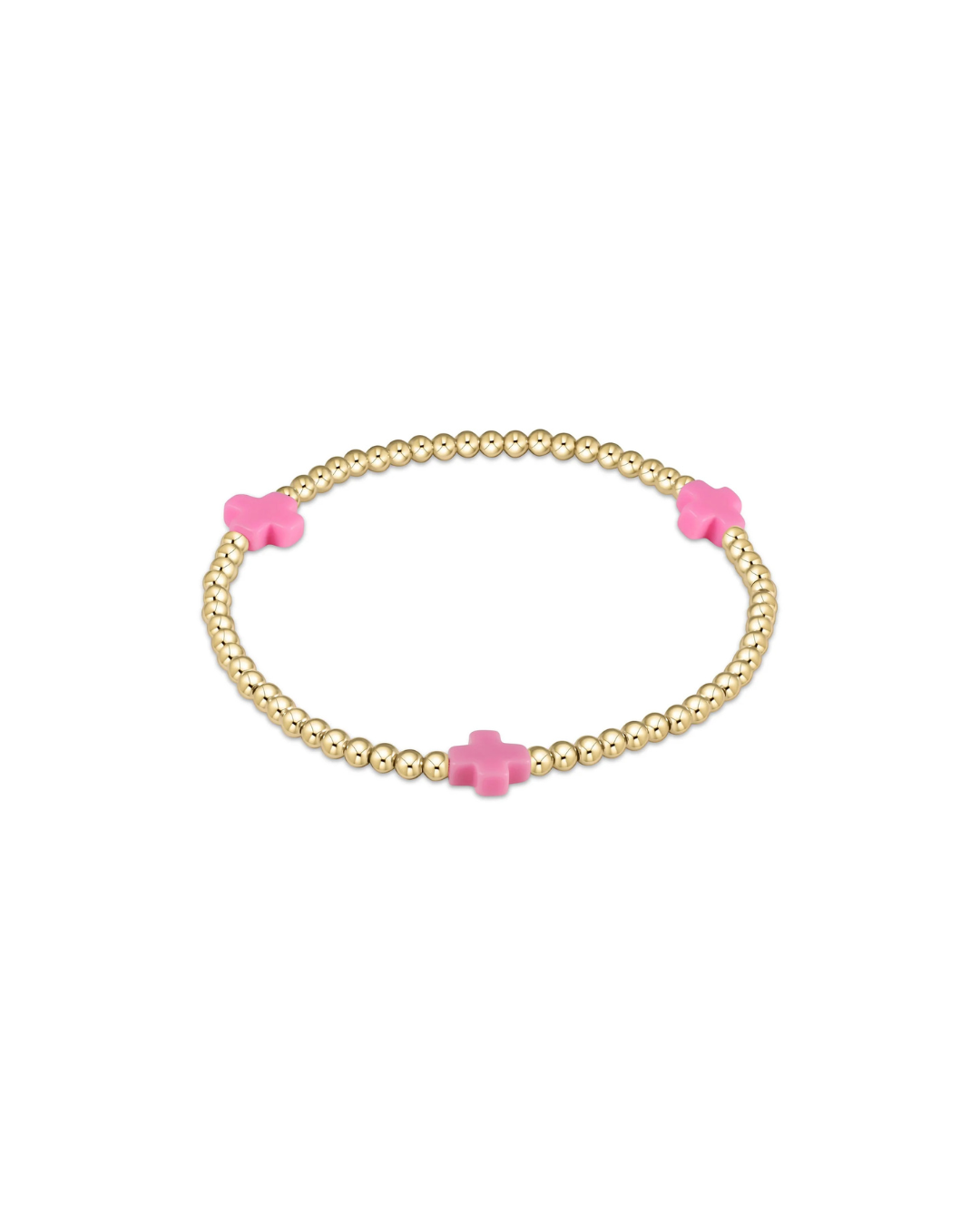 enewton Signature Cross Gold Pattern 2mm Bead Bracelet - Bright Pink
