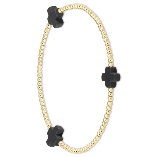 enewton Signature Cross Gold Pattern 2mm Bead Bracelet - Charcoal