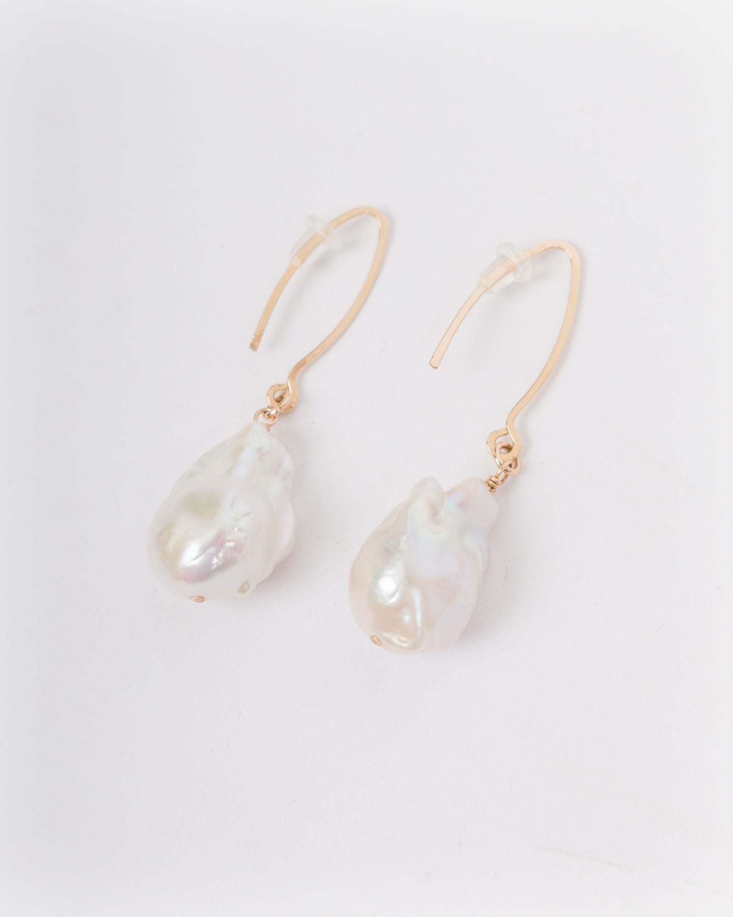 Classic in pearls, these eye catching earrings feature an extra large Baroque Pearl pendant .