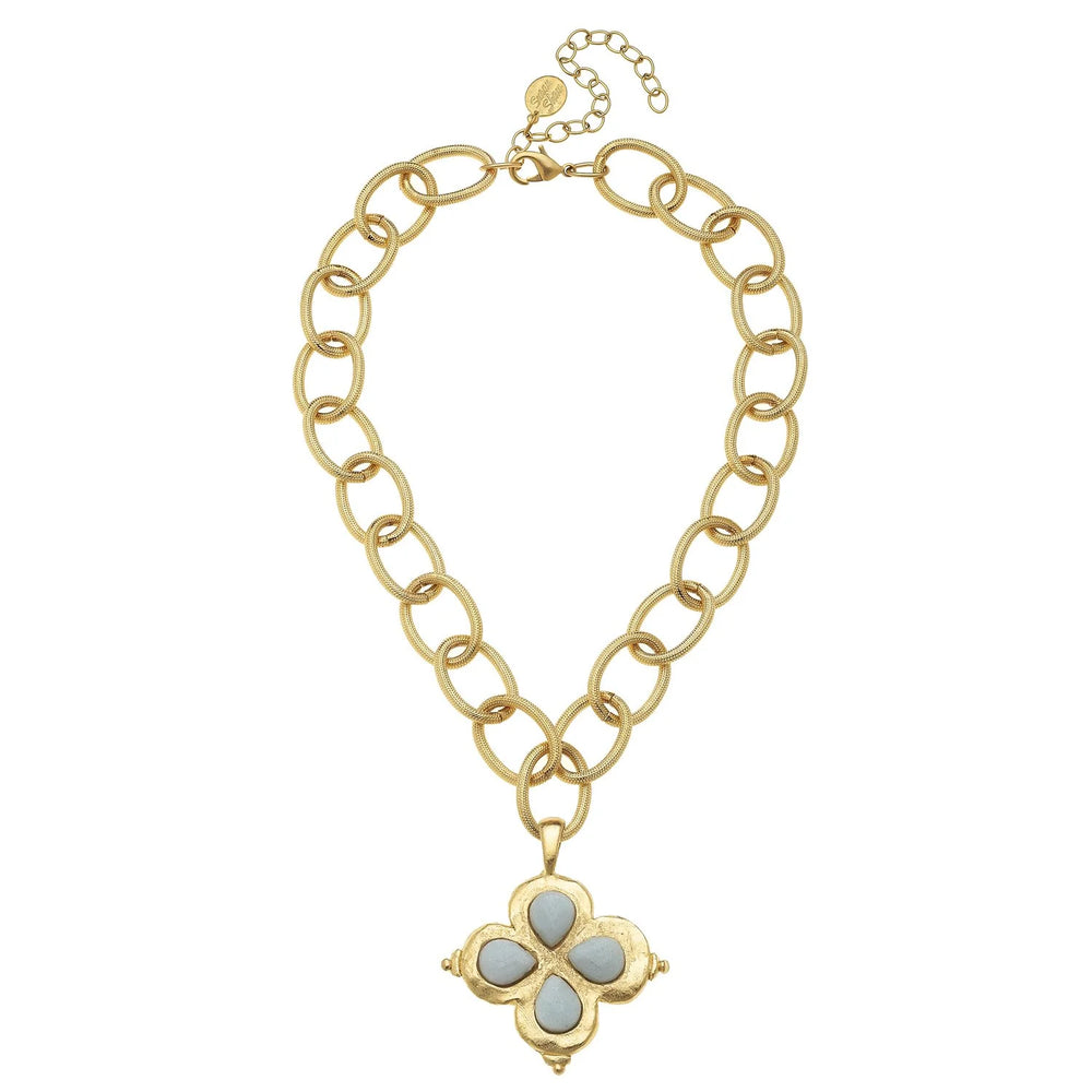 J.Mills Studio Milky Aquamarine Marquis Cut Gemstone Necklace with Asymmetrical Gemstone Accent
