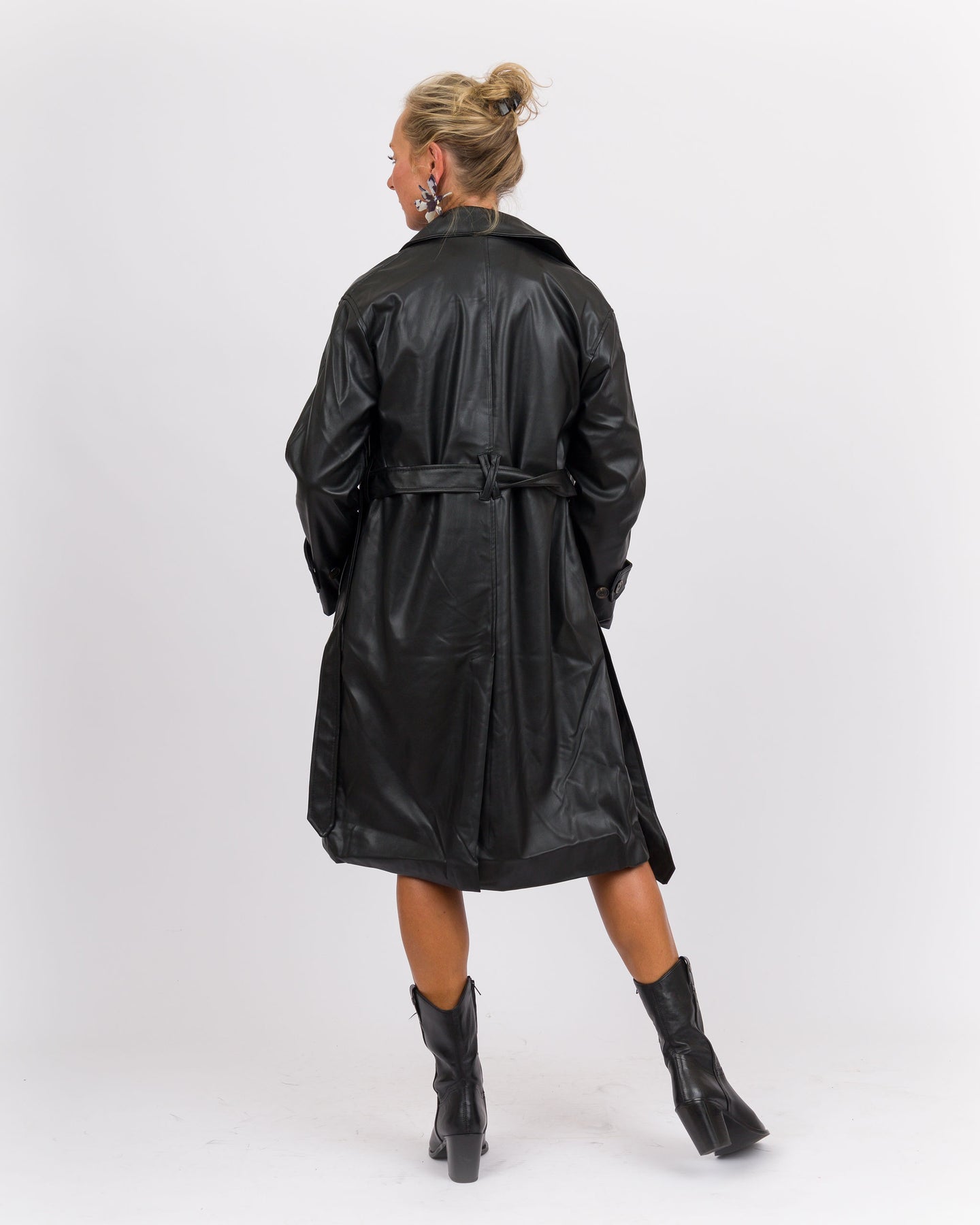 This Black Bega Leather Trench Coat features a classic button-down collar and convenient pockets for added functionality. Its sleek leather design offers a timeless and versatile style suitable for any occasion. Stay warm and stylish with this expertly crafted outerwear piece.