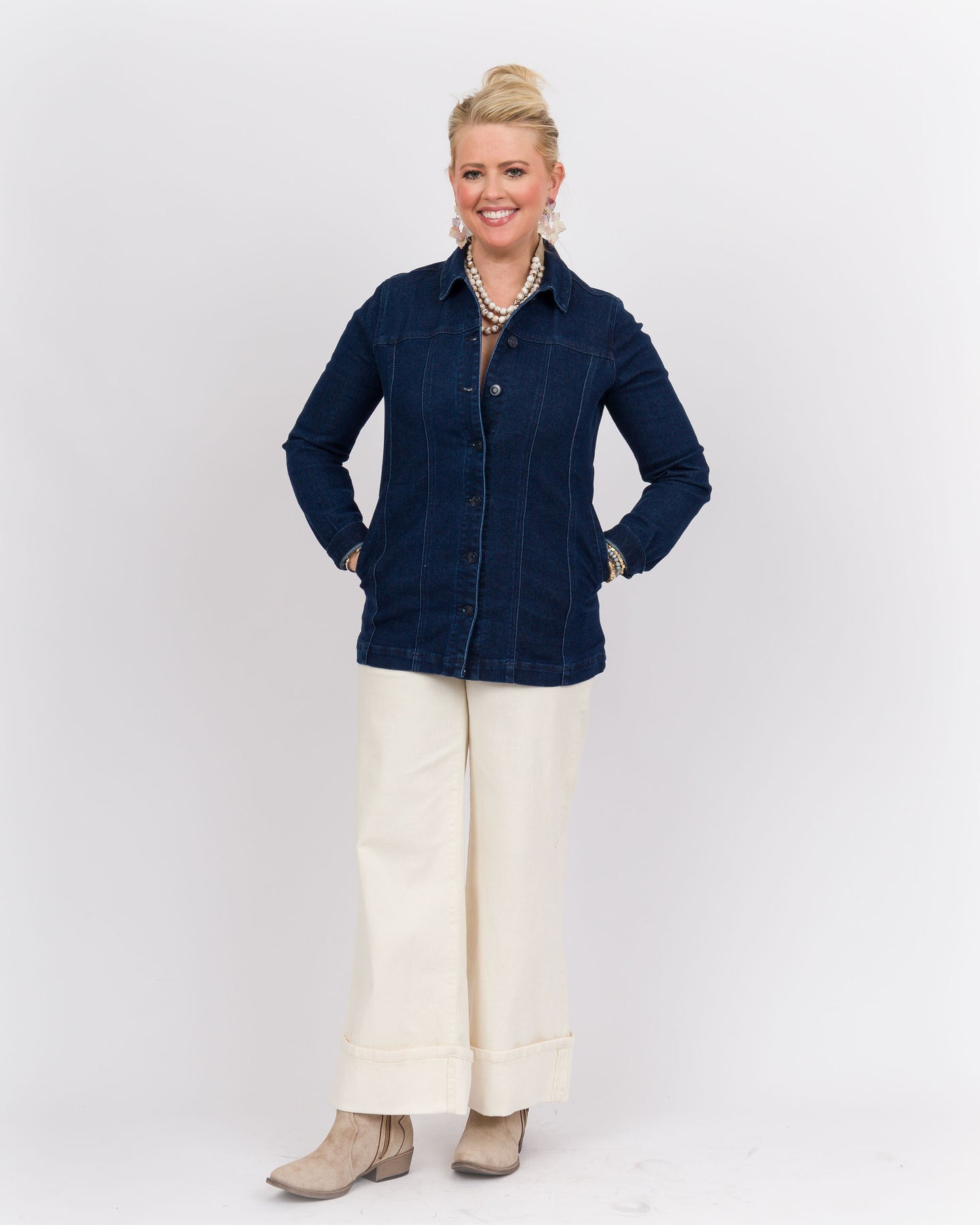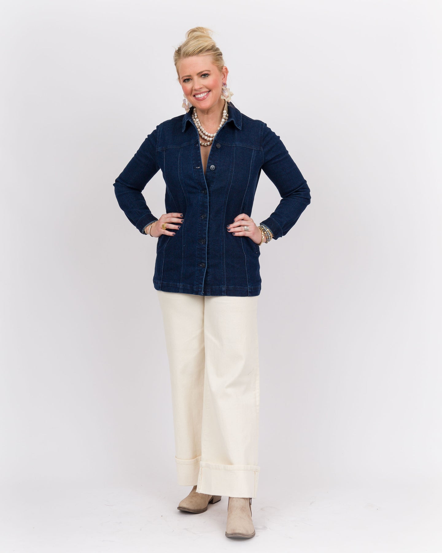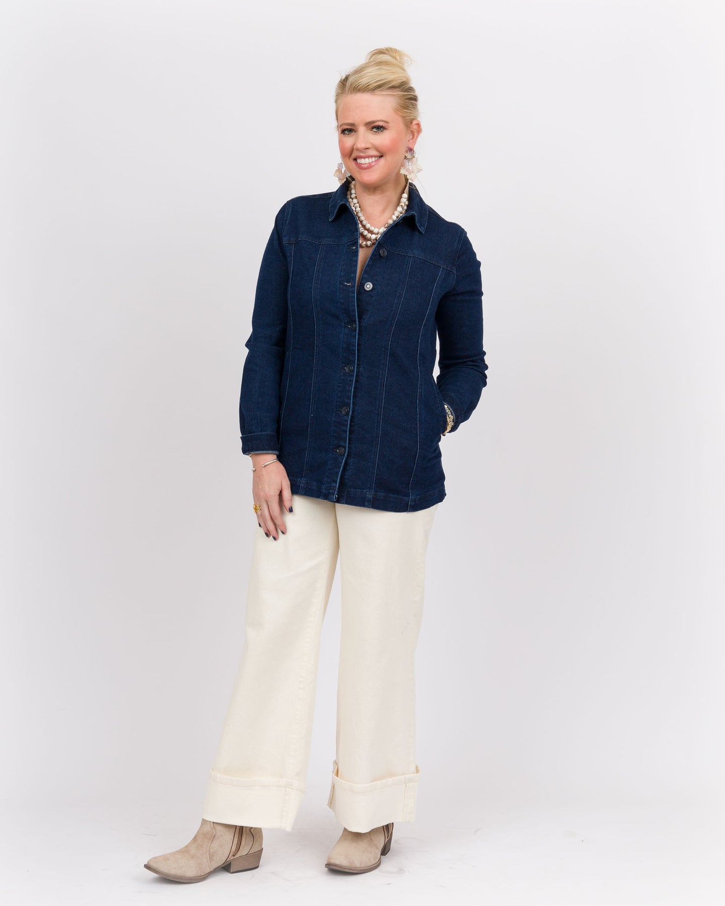 This Darling Denim Jacket features a classic dark denim with a button-down collar, offering timeless style and a polished look. Its durable fabric ensures long-lasting wear, making it a versatile addition to any wardrobe. Perfect for layering, it adds effortless cool to both casual and semi-formal outfits.