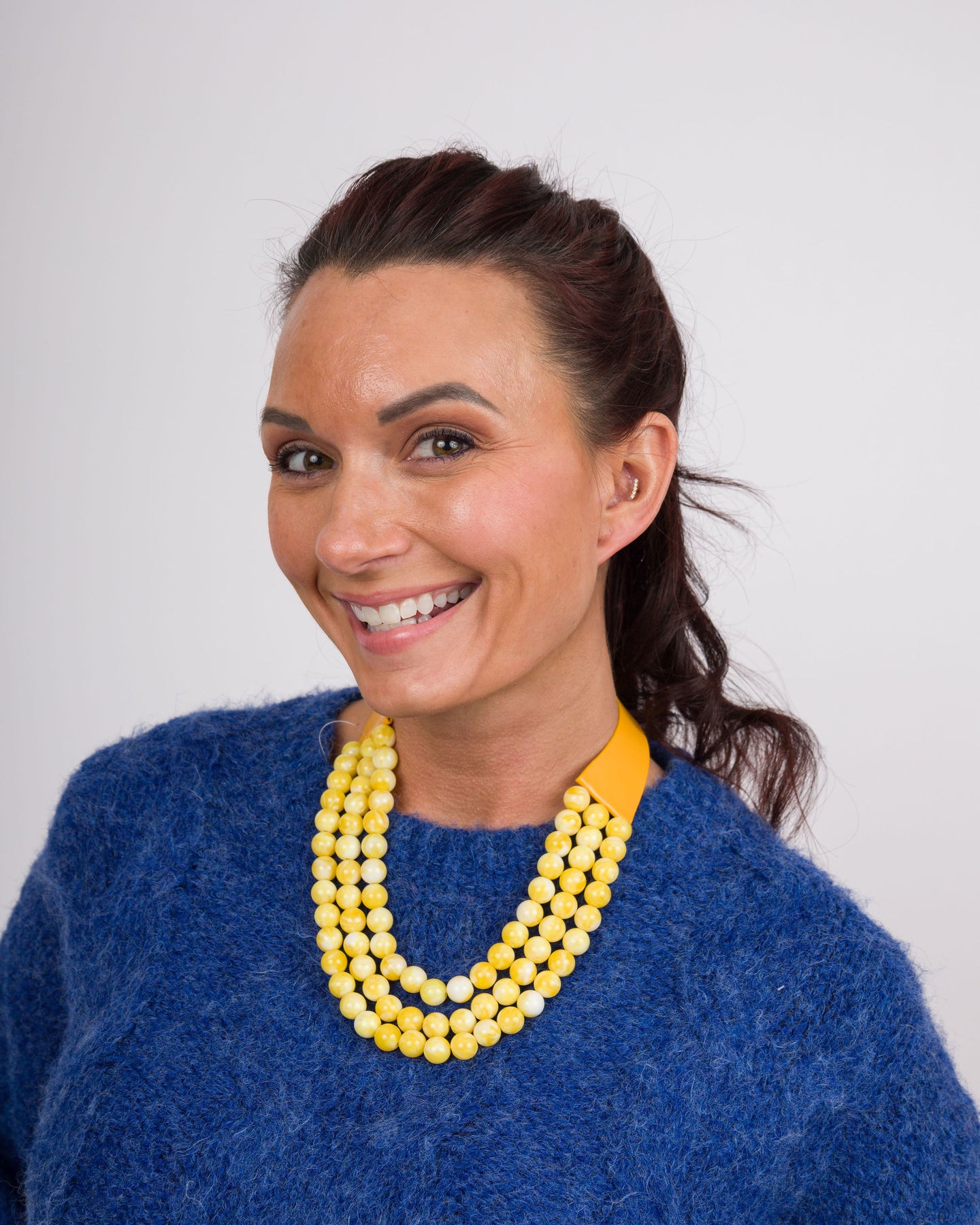 This vibrant yellow beaded necklace features three delicate rows of beads that layer beautifully for a bold, eye-catching look. The multi-row design adds dimension and movement, making it perfect for elevating everyday outfits or adding a pop of color to special occasions. Lightweight and versatile, this piece transitions effortlessly from casual to dressy styling.