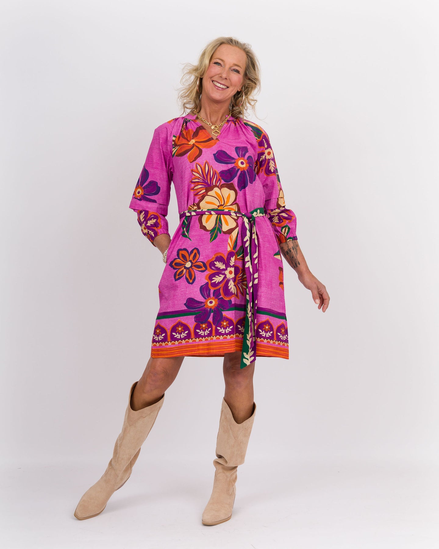 The Gia Dress in Mauve Blossoms features a flattering V-neck design with functional button-down styling that transitions effortlessly from day to night. The soft floral print in soothing mauve tones adds a romantic touch while remaining versatile enough to pair with your favorite accessories. Perfect for creating polished looks that feel both comfortable and put-together.
