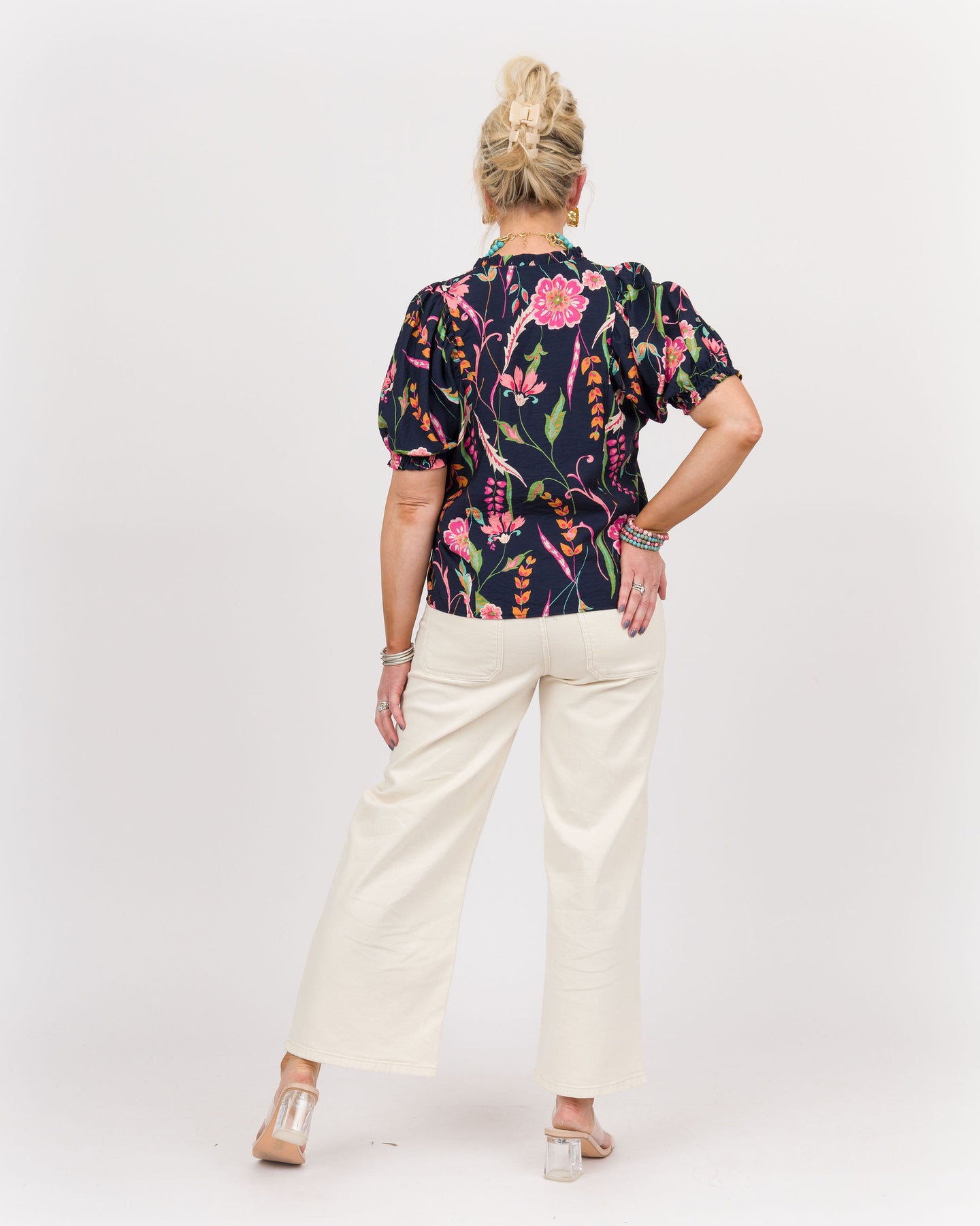Elevate your wardrobe with this charming floral print top, featuring romantic puff sleeves and a flattering V-neckline that works beautifully for both casual outings and dressed-up occasions. The delicate floral pattern adds visual interest while the structured puff sleeves provide a modern, feminine silhouette. Perfect for layering or wearing solo, this versatile piece transitions seamlessly from day to night.