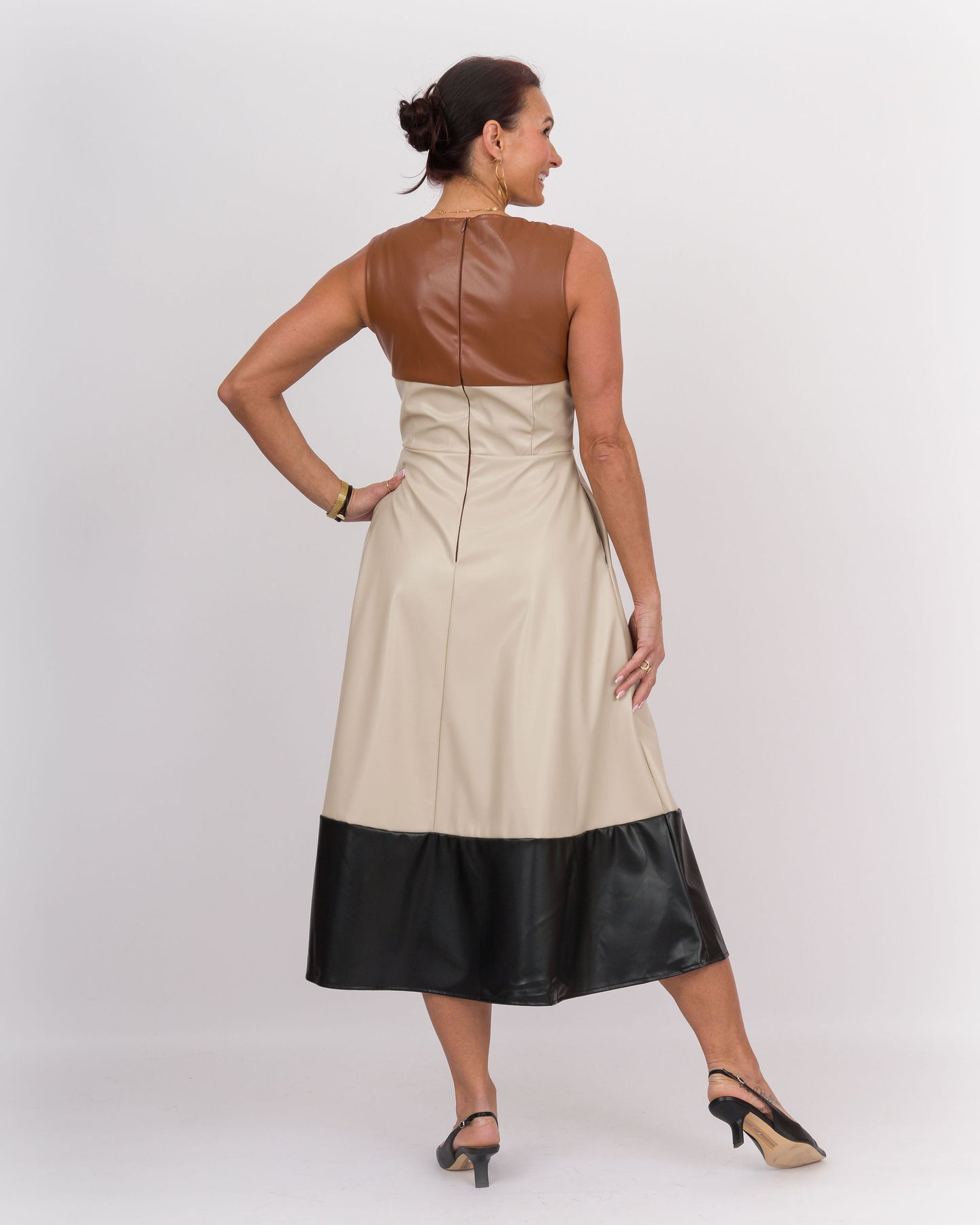 With a modern, sleek design, the Veronica Faux Leather Dress is a must-have for any fashion-forward individual. Crafted from high-quality faux leather, this dress features a sleeveless cut, perfect for showing off your arms and keeping you cool during warmer weather. Elevate your style and confidence with this stunning dress.