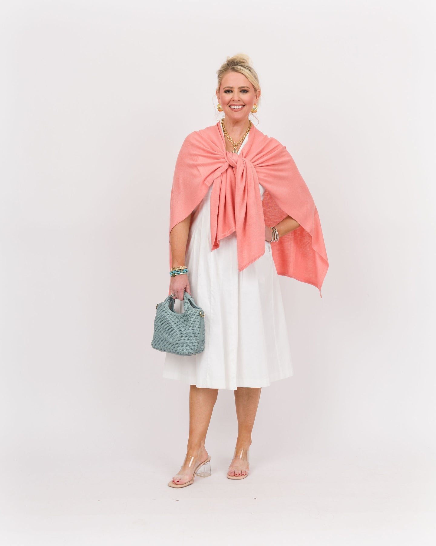There are multiple ways to wear this wrap. Wear over anything. Drape straight to style as a cardigan or cross one or both ends for a different look. Just think of all the outfit combinations you can make to just by adding one of these pieces to your wardrobe!
