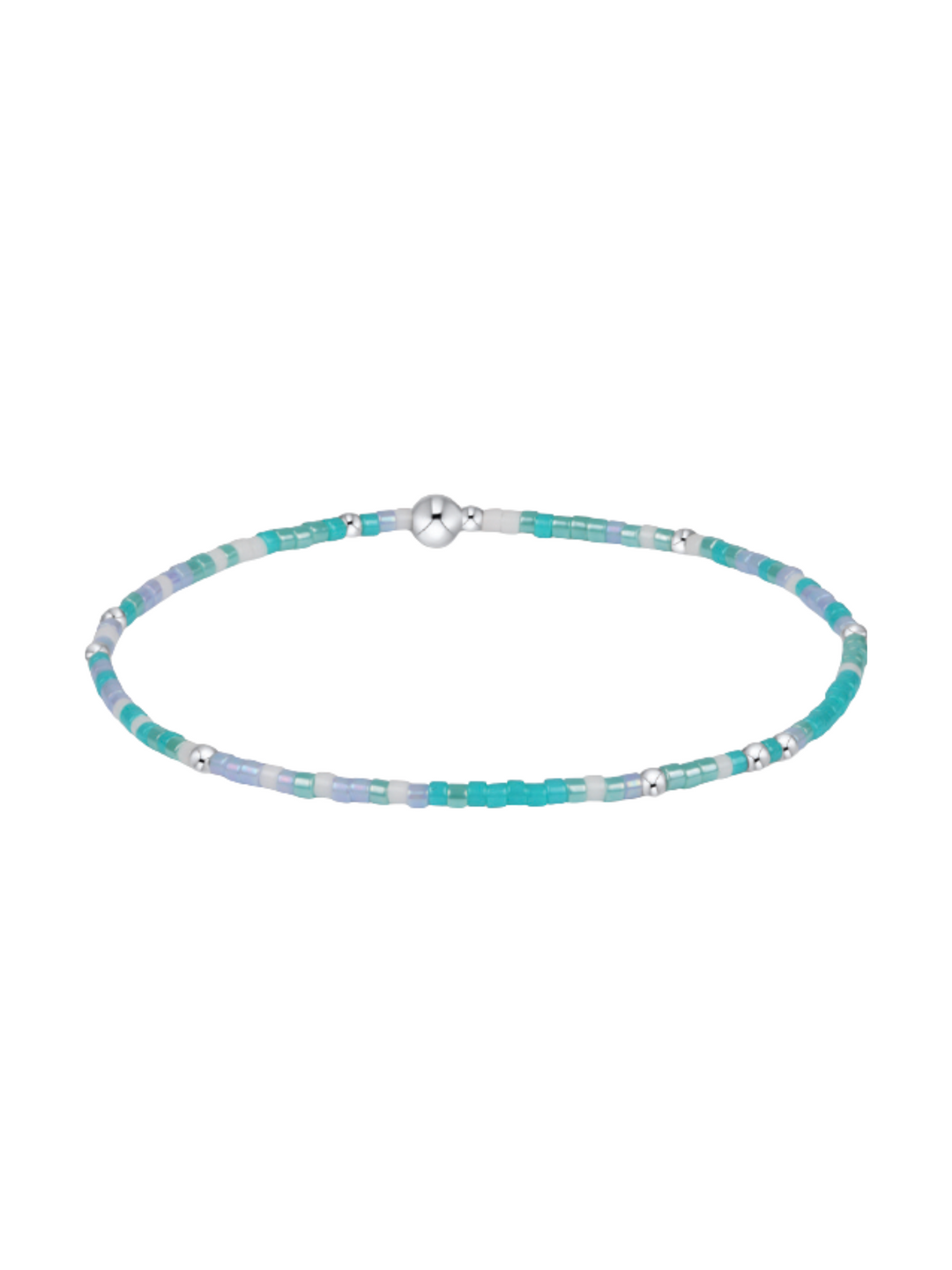 - Hand beaded on high performance elastic for a slight stretch to easily roll on and off your wrist