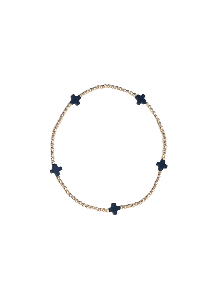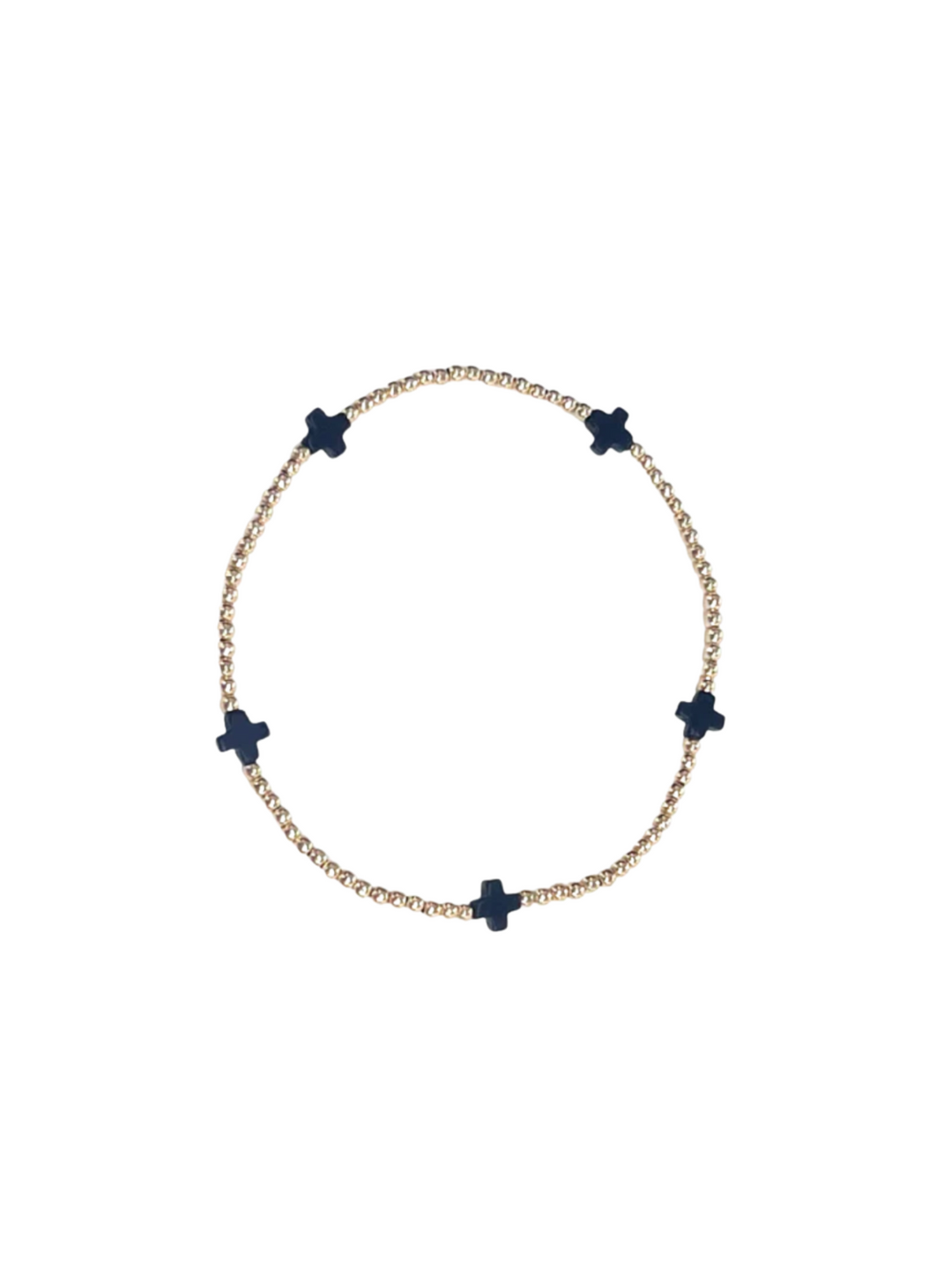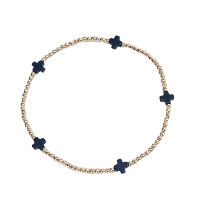 enewton Signature 5 Cross Small Gold Pattern 2mm Bead with Charcoal Cross Bracelet
