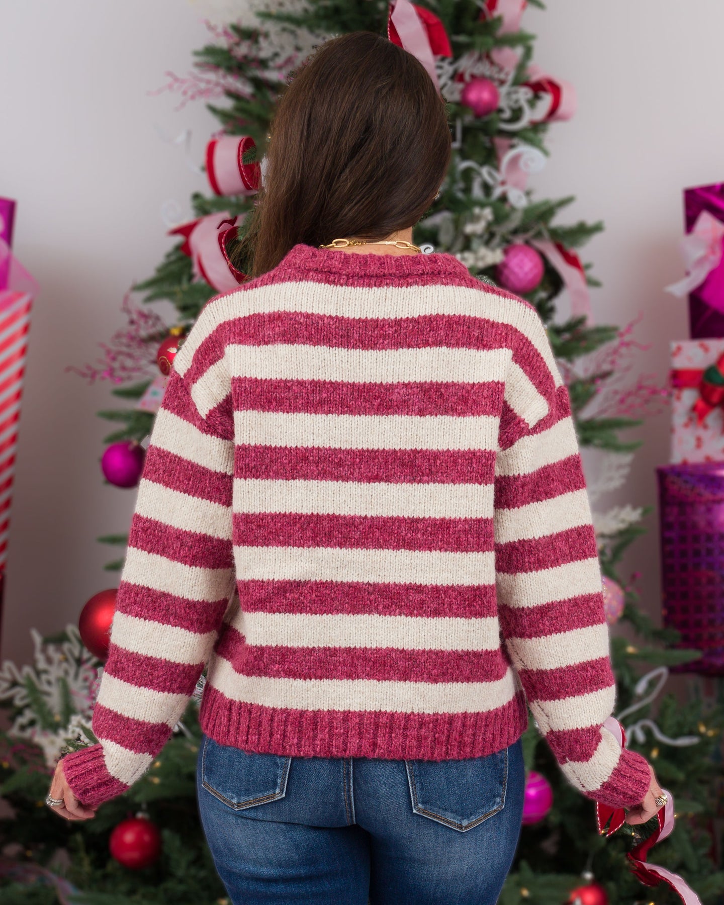 This White Fuchsia Sweater features subtle striped detailing that adds a touch of sophistication to your casual wardrobe. Crafted for comfort and style, it pairs effortlessly with jeans or skirts for an everyday chic look. Stay warm and fashionable with this versatile layering piece.